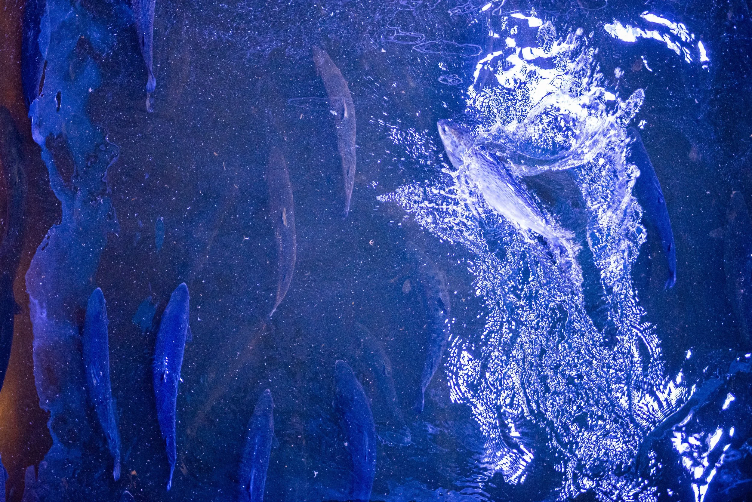 The fish, about 280,000 in total, spend their entire lives in these tanks without ever going to the ocean, a practice that is still being tried and tested in the industry, Fletcher says.