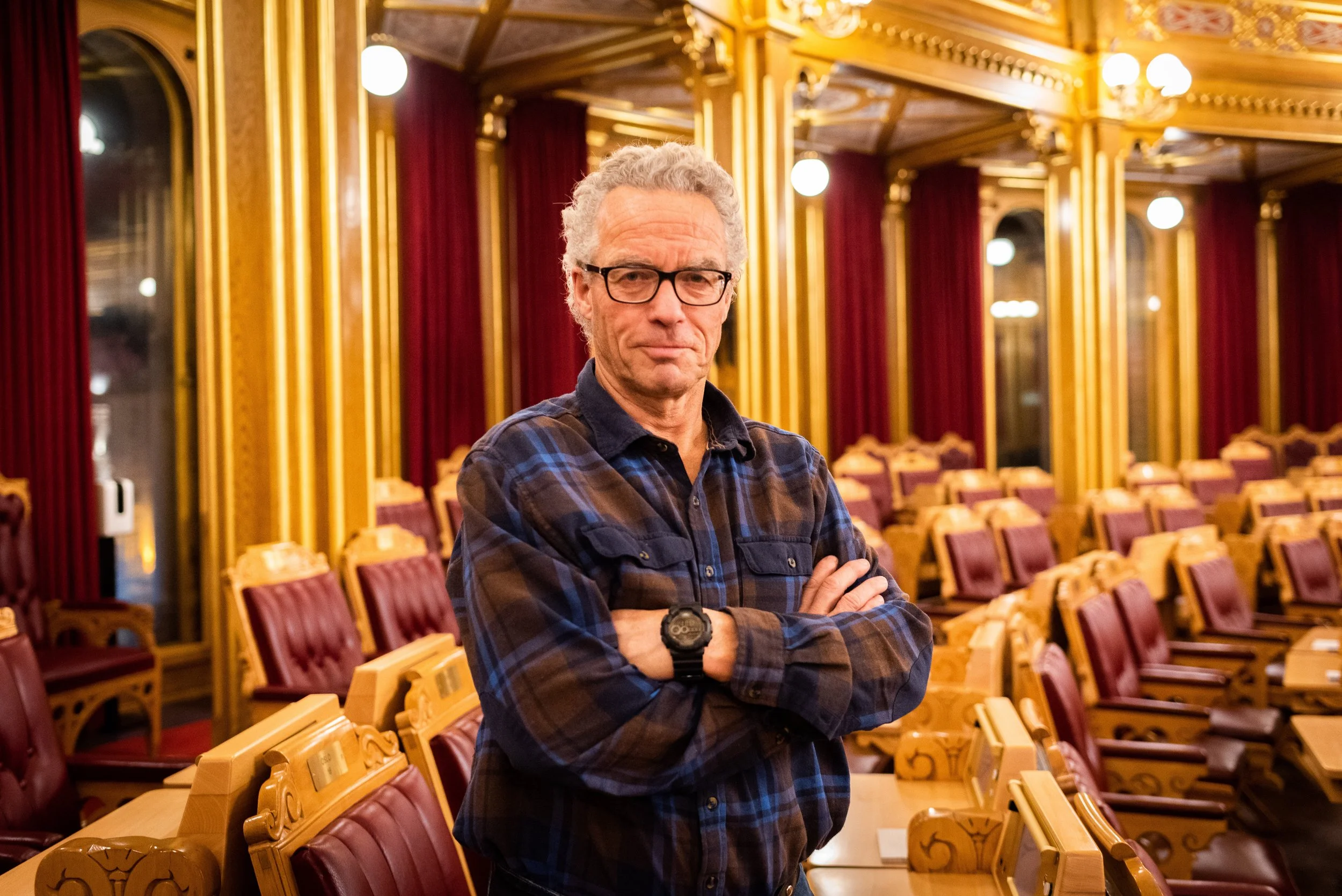 Green MP Rasmus Hansson stands in the Storting, Norway’s parliament. Hansson says land-based fish farming could be sustainable, but that the feed used in global aquaculture is linked to deforestation