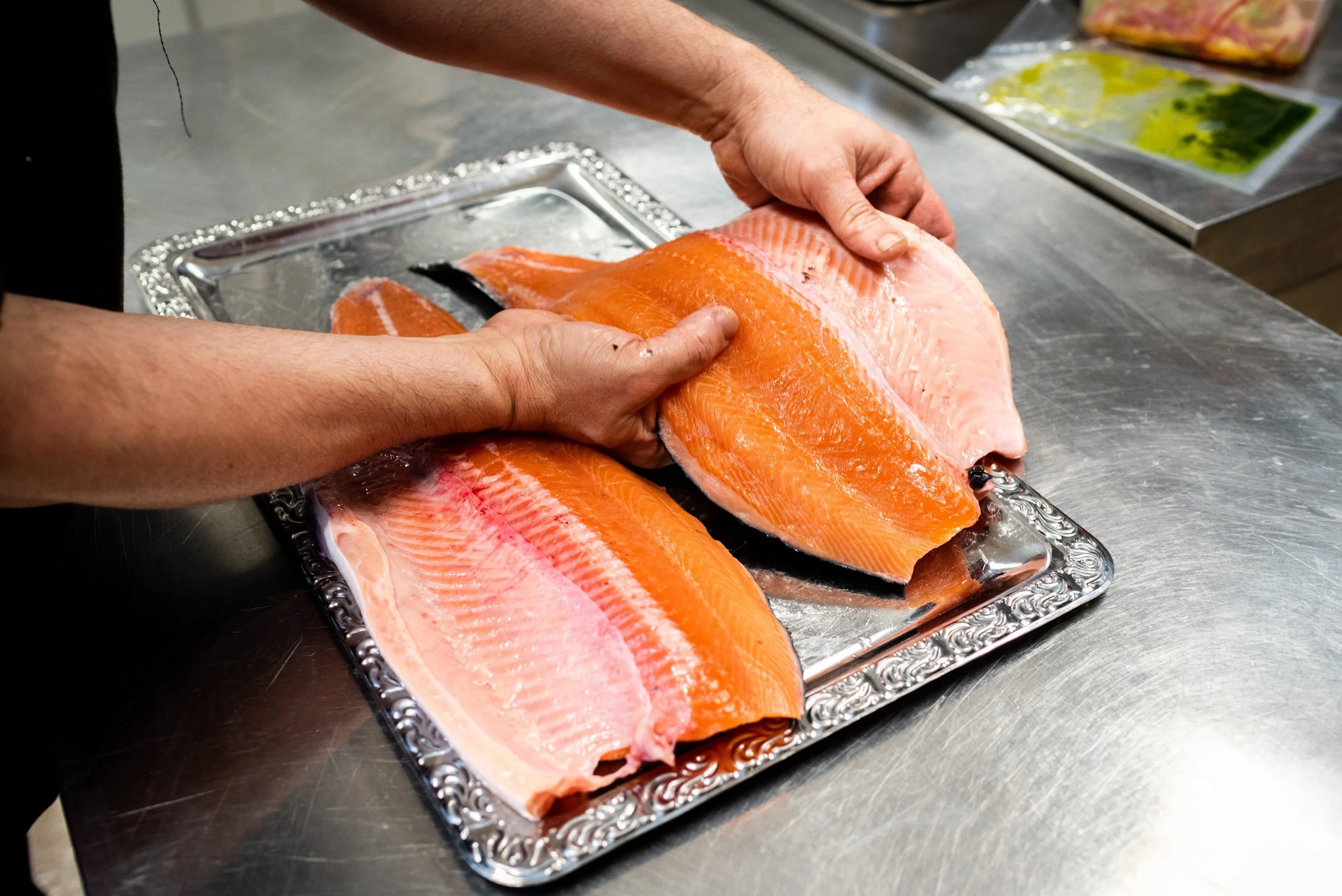 A treat for locavores: the chef at restaurant Værk prepares Fredrikstad salmon raised less than 2km away