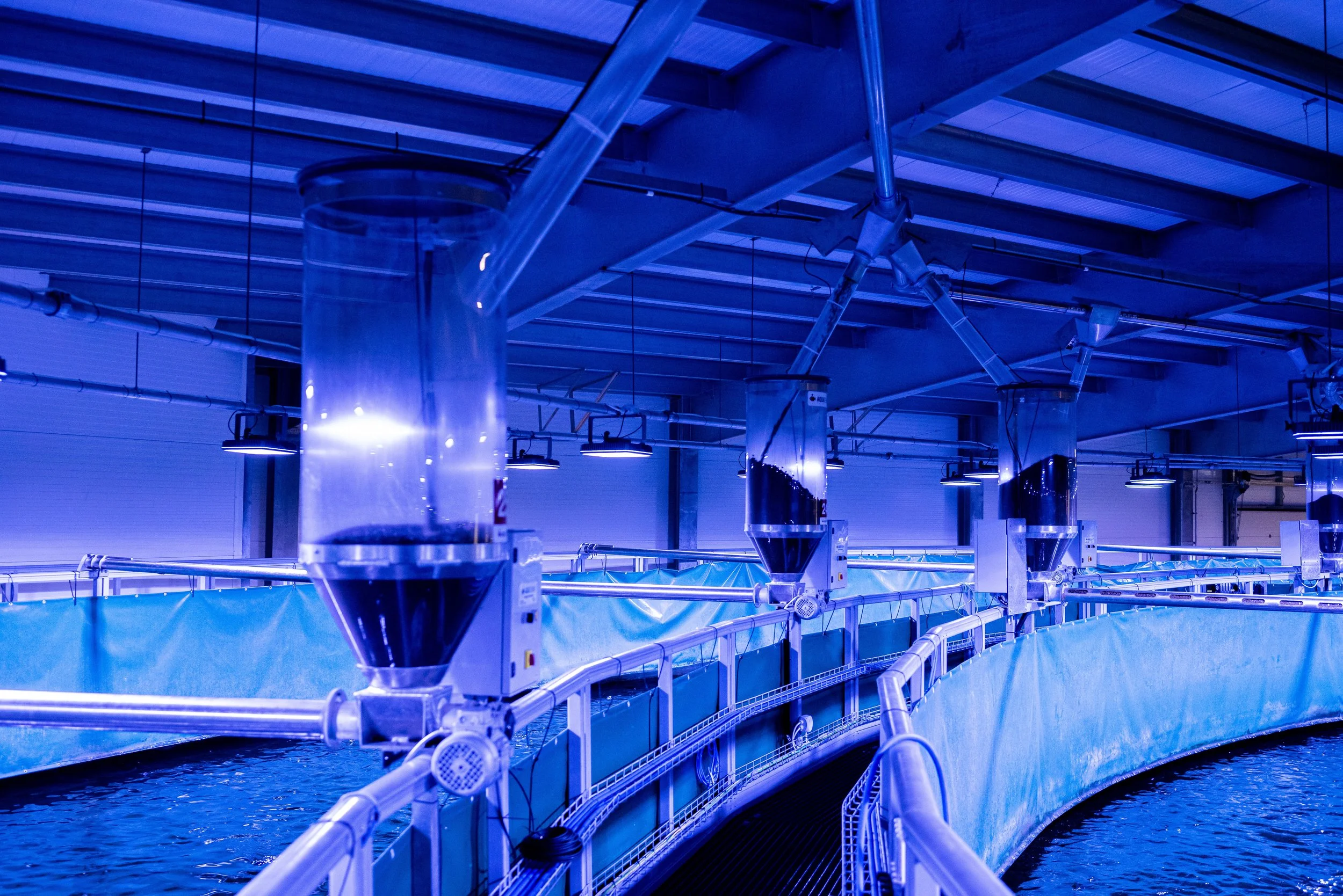 The RAS — recirculating aquaculture system — at Fredrikstad was custom-designed by Danish engineers. The system allows water to be continuously filtered